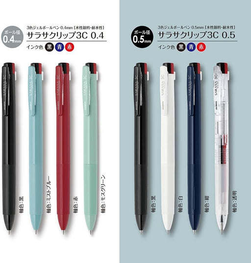 Zebra Sarasa Clip 3-Color Ballpoint Pen 0.4mm with Refills Black Barrel